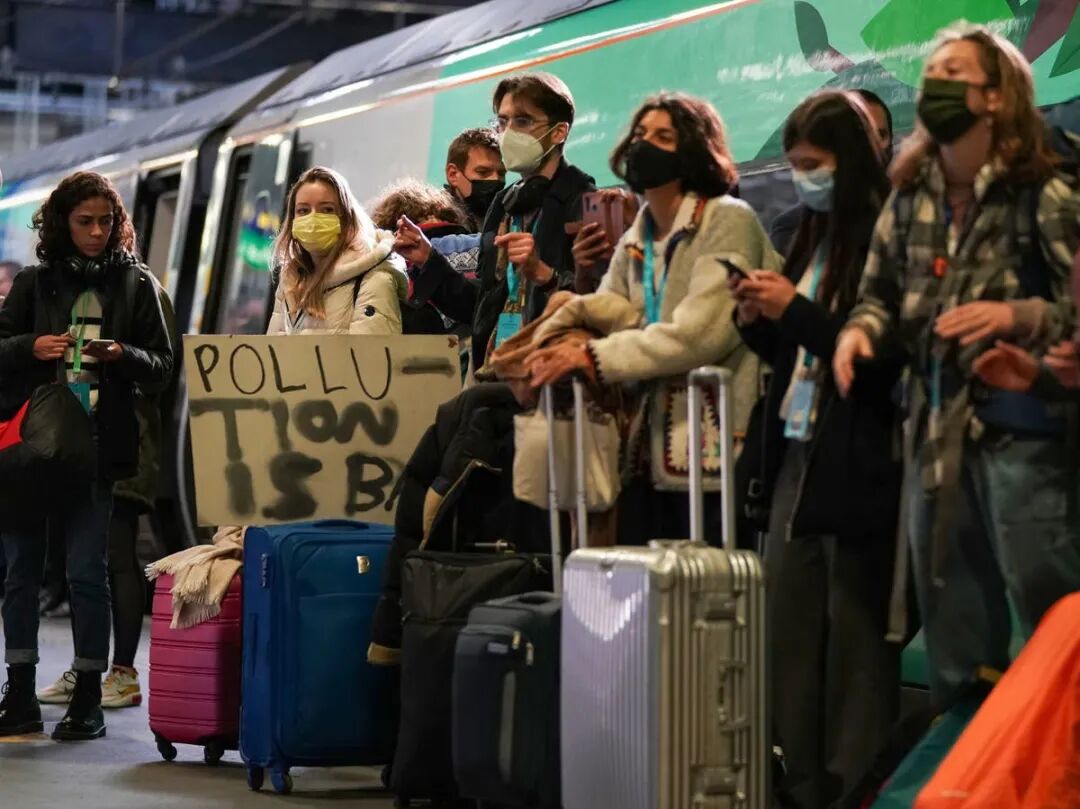 18岁的瑞典活动家环保少女Greta Thunberg在参加了伦敦的气候游行之后于周六(10月30日)晚间从伦敦Euston乘火车抵达格拉斯哥中央车站。