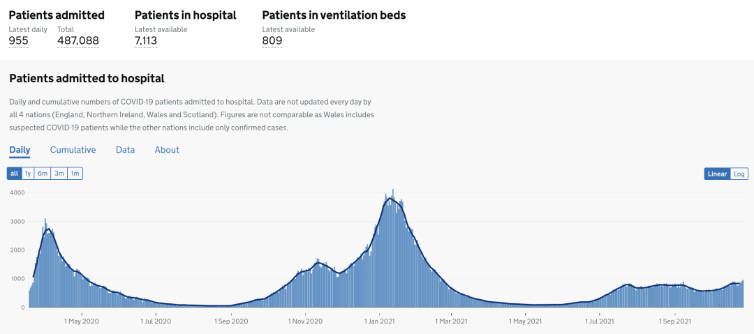 目前英格兰地区使用呼吸机的新冠患者有809人(+15);病亡新冠患者总计122,269人(+148)。