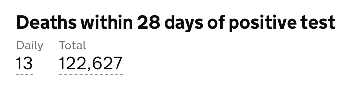 目前英格兰地区使用呼吸机的新冠患者有859人(+50);病亡新冠患者总计122,627人(+13)。