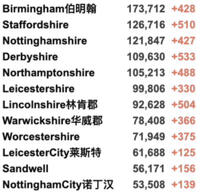 英国疫情实时地图 / 城区具体数据