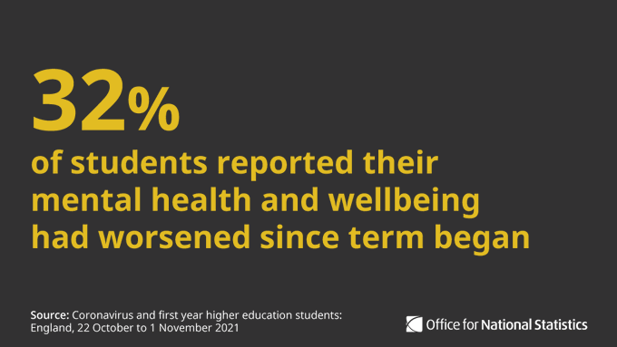 10月和11月间对英格兰973名学生的调查表明,与9月(26%)相比,大学生们回到校园后感觉自己的心理健康恶化了(32%)。