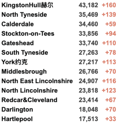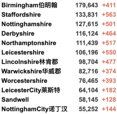 英国疫情实时地图 / 城区具体数据
