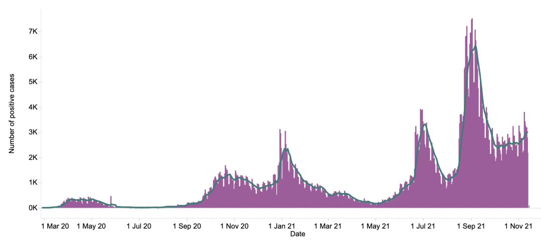 英国日增确诊案例趋势图