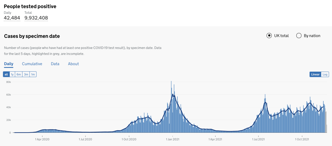 英国日增确诊案例趋势图