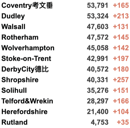 英国疫情实时地图 / 城区具体数据
