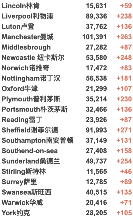 英国大学城市疫情具体数据