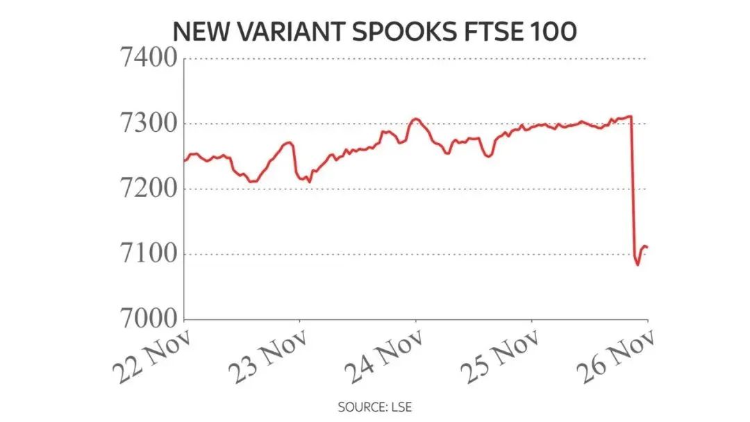 另一方面,全球市场正在因该南非新变种而“动荡不安”。全球股市大幅抛售,英国股市今早蒸发超过650亿英镑,或创下一年来的最大单日跌幅。