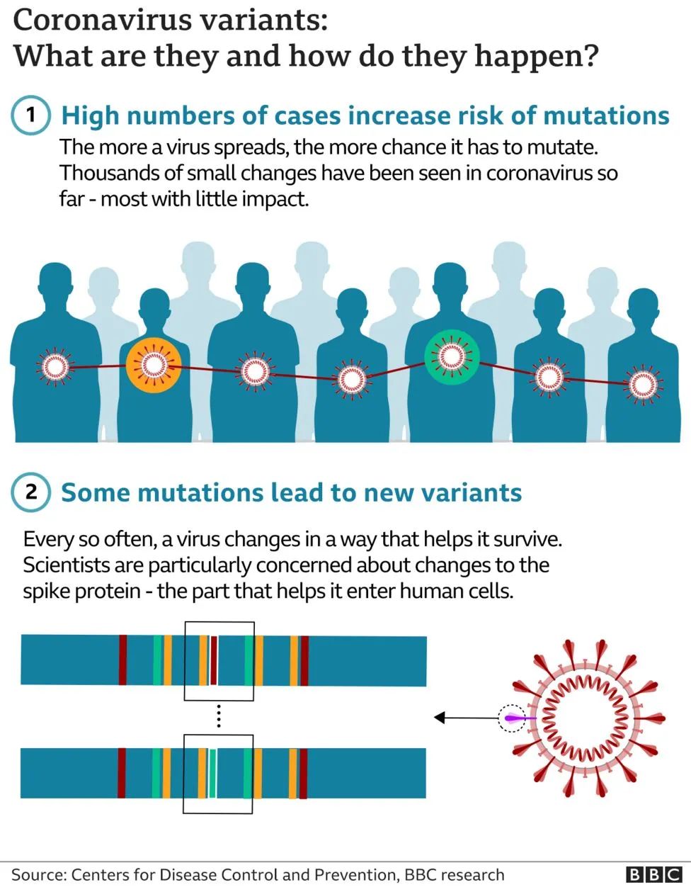 科学家们说,该变体的尖峰蛋白变化比之前所见过的任何其他变体都要多。有部分研究员认为,该变种可能是由长期携带病毒的免疫力低下的人产生的,尤其可能来自未经治疗的艾滋病毒携带者或艾滋病患者。