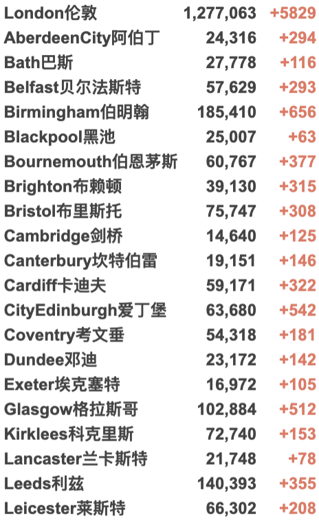 英国大学城市疫情具体数据