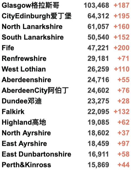 此外,今日苏格兰公布了6例最新发现的Omicron奥密克戎变种,其中4例位于Lanarkshire地区,另外2例则分布在大格拉斯哥地区。