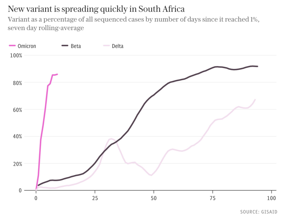 在发现后,世界卫生组织WHO于11月25日最终称之为Omicron,南非国家传染病研究所NICD从11月14日-16日的实验室采集样本中检测并公布了该变种。