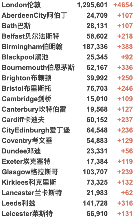 英国大学城市疫情具体数据