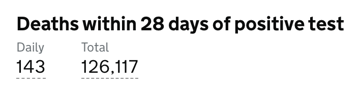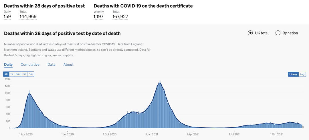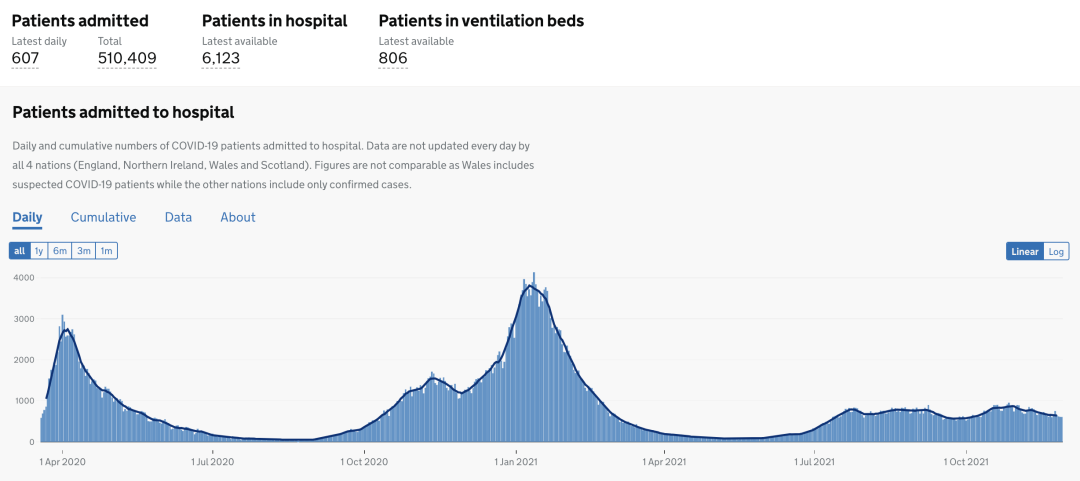 目前英格兰地区使用呼吸机的新冠患者有806人(+13);病亡新冠患者总计126,117人(+143)。