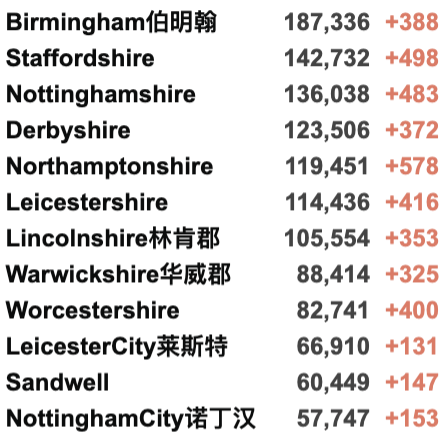 英国疫情实时地图 / 城区具体数据