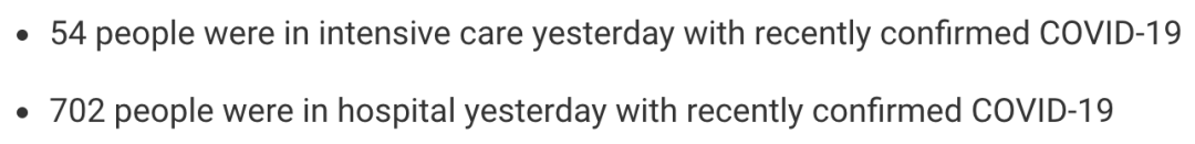 从2020年3月5日以来,苏格兰地区共有25,324名(+58)确诊患者出院。截至12月1日午夜,近期住院的疑似/确诊新冠患者702名(-4),其中54名(=)确诊新冠在重症监护室ICU。