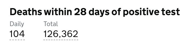目前英格兰地区使用呼吸机的新冠患者有774人(+1);病亡新冠患者总计126,362人(+104)。