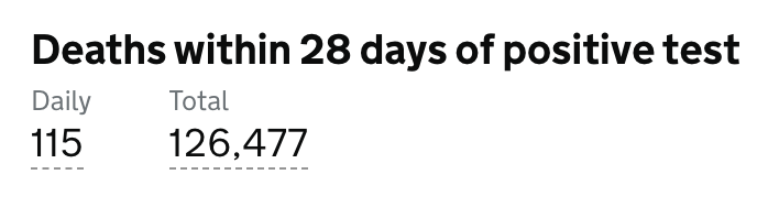 目前英格兰地区使用呼吸机的新冠患者有783人(+9);病亡新冠患者总计126,477人(+115)。