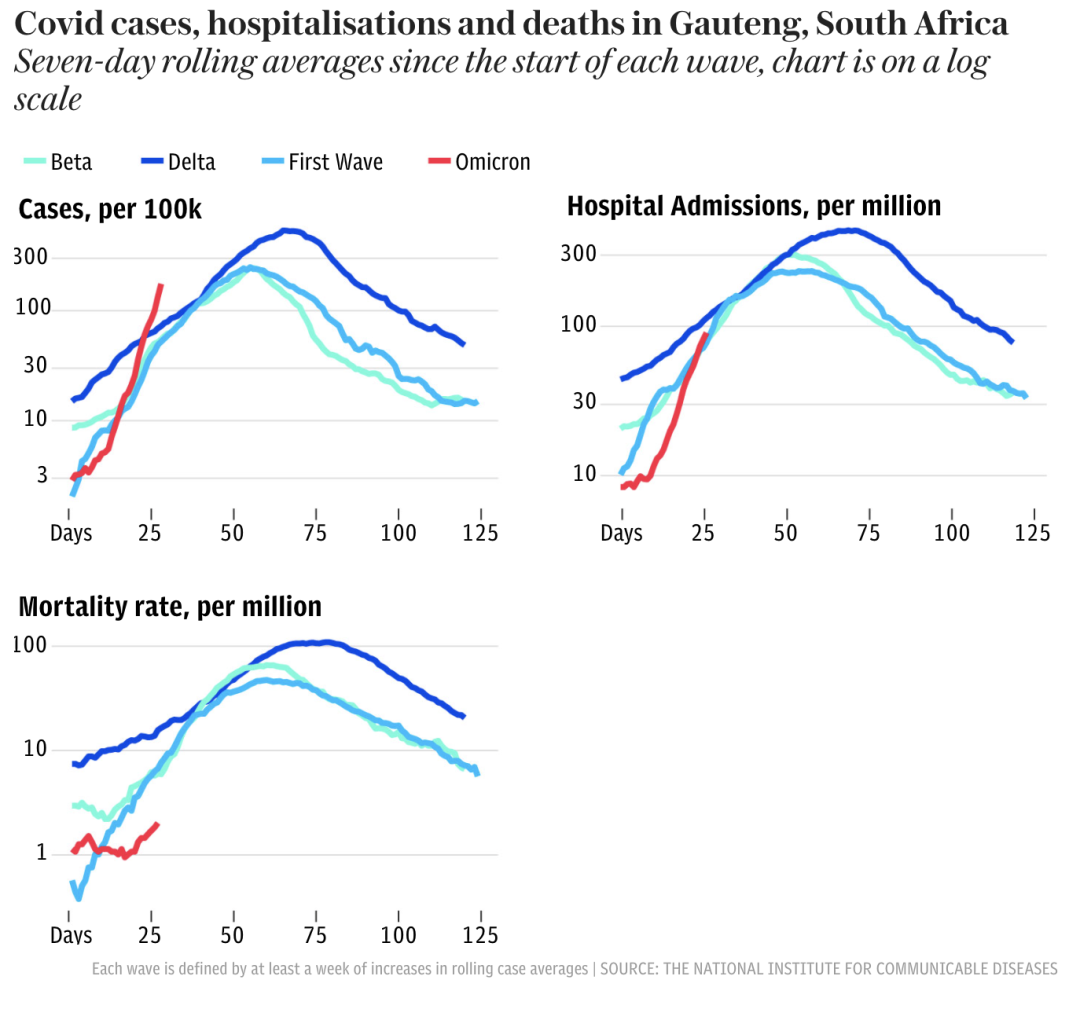 那么根据来自南非的关于Omicron新变种的数据显示:该变种正在社区中迅速蔓延,病例从三周前的约300例增加至7日滚动平均近7,000例。