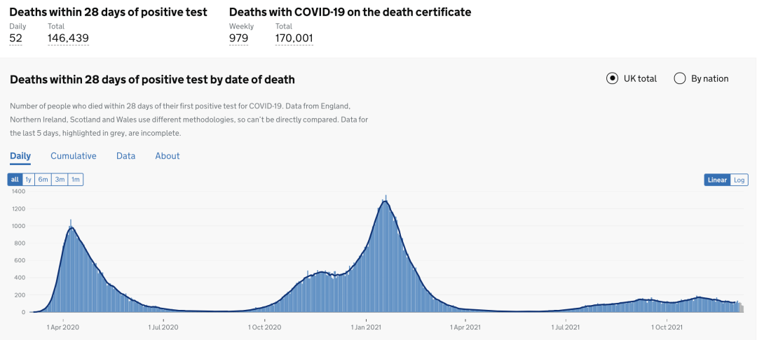 目前英格兰地区使用呼吸机的新冠患者有793人(+1);病亡新冠患者总计127,154人(+90)。