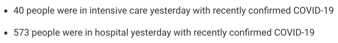 从2020年3月5日以来,苏格兰地区共有25,817名(+60)确诊患者出院。截至12月11日午夜,近期住院的疑似/确诊新冠患者573名(-5),其中40名(+1)确诊新冠在重症监护室ICU。