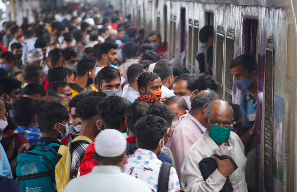在印度的大型集会、公共场所或其他活动中,人们仍亲密接触,大多数人戴着口罩,但佩戴方式十分不规范。