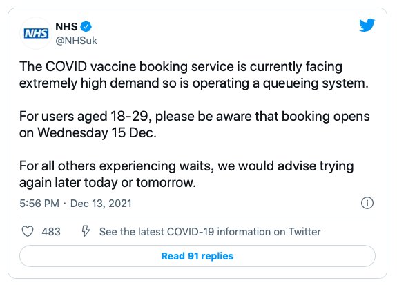 在鲍里斯做出这一计划的改变后,NHS网站的流量激增,导致网页“崩溃”,一些预约疫苗接种的人发现自己处于多达15,000人的虚拟队列中。