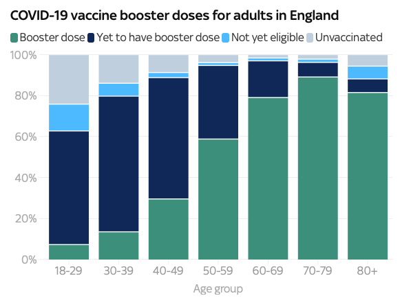 英格兰成年人接种加强剂比例 | 图片来源SkyNews