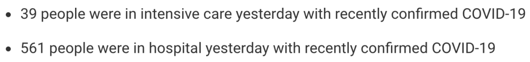 从2020年3月5日以来,苏格兰地区共有25,940名(+123)确诊患者出院。截至12月13日午夜,近期住院的疑似/确诊新冠患者561名(-12),其中39名(-1)确诊新冠在重症监护室ICU。