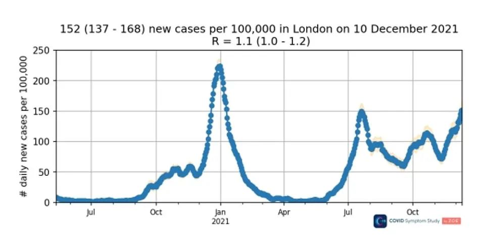 帮助创建英国最大新冠病毒症状跟踪应用程序COVID ZOE的Tim Spector教授说,受Omicron变种影响,伦敦的新增新冠病例比第一波疫情以来的任何时候上升得都快。科学家们正在向首相鲍里斯Boris Johnson施加压力,要求实施更严厉的限制。