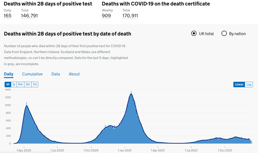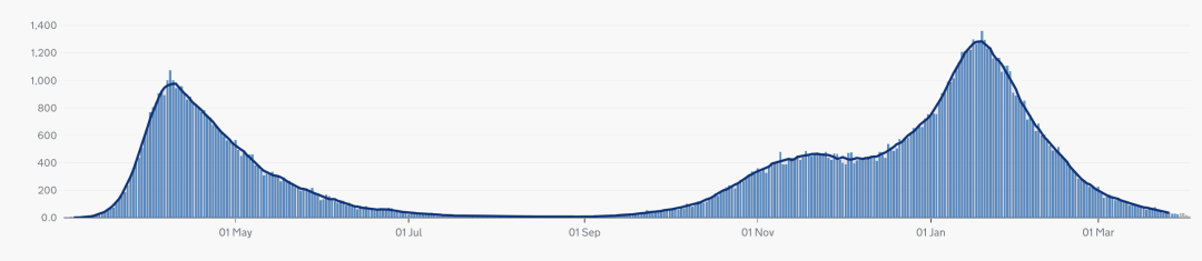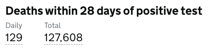 目前英格兰地区使用呼吸机的新冠患者有896人(+101);病亡新冠患者总计127,608人(+129)。