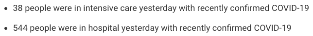 从2020年3月5日以来,苏格兰地区共有26,059名(+63)确诊患者出院。截至12月15日午夜,近期住院的疑似/确诊新冠患者544名(+3),其中38名(-)确诊新冠在重症监护室ICU。