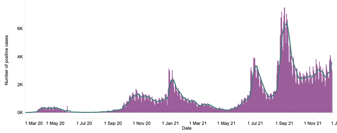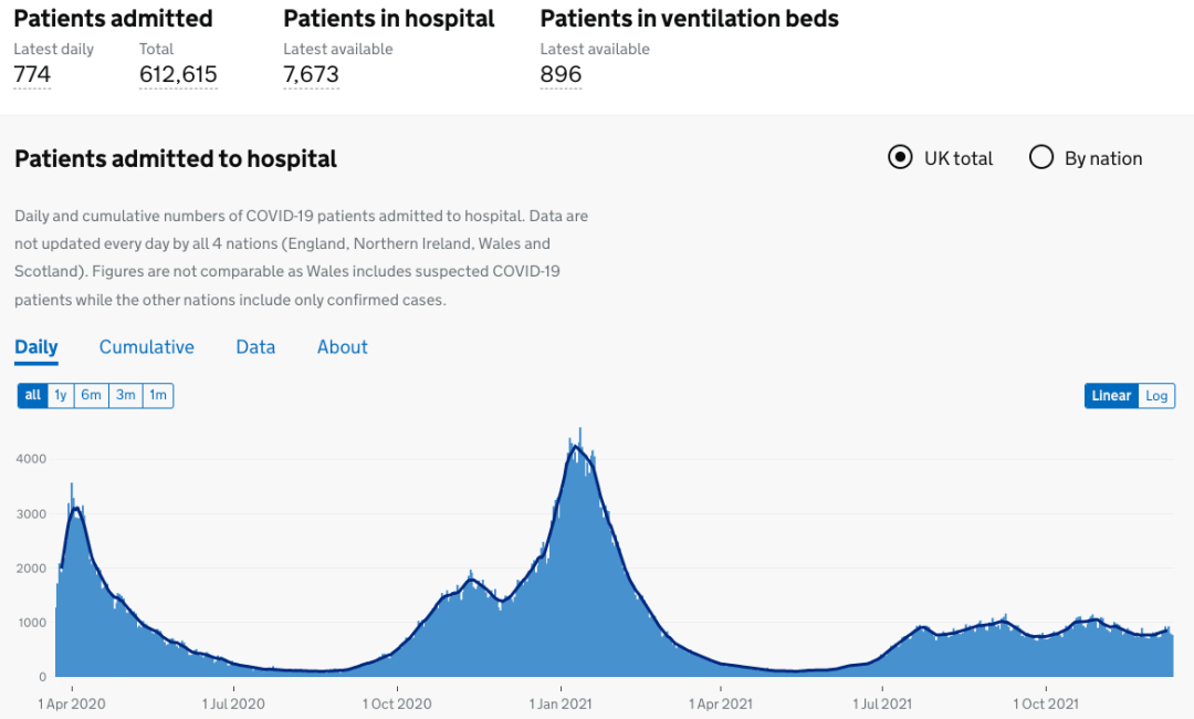 伦敦的住院人数也开始上升,在两星期内增加了50%。死亡人数仍保持在每天10人左右。然而,这些都是数字都有“滞后性”,因为从感染病毒到入院还需要时间,这意味着最严重的快速传播要到2022年1月才会出现。