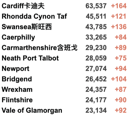 其中英格兰新增4,237例,总数为9,243例;苏格兰新增265例,总数为561例;威尔士新增30例,总数为62例;北爱新增139例,总数为151例。