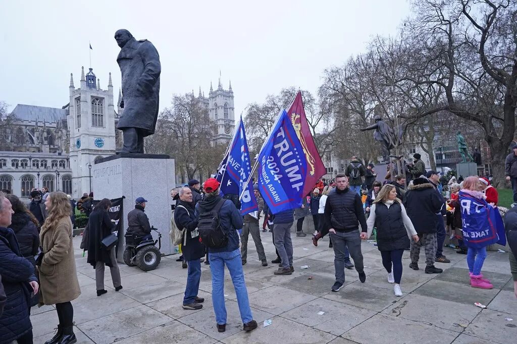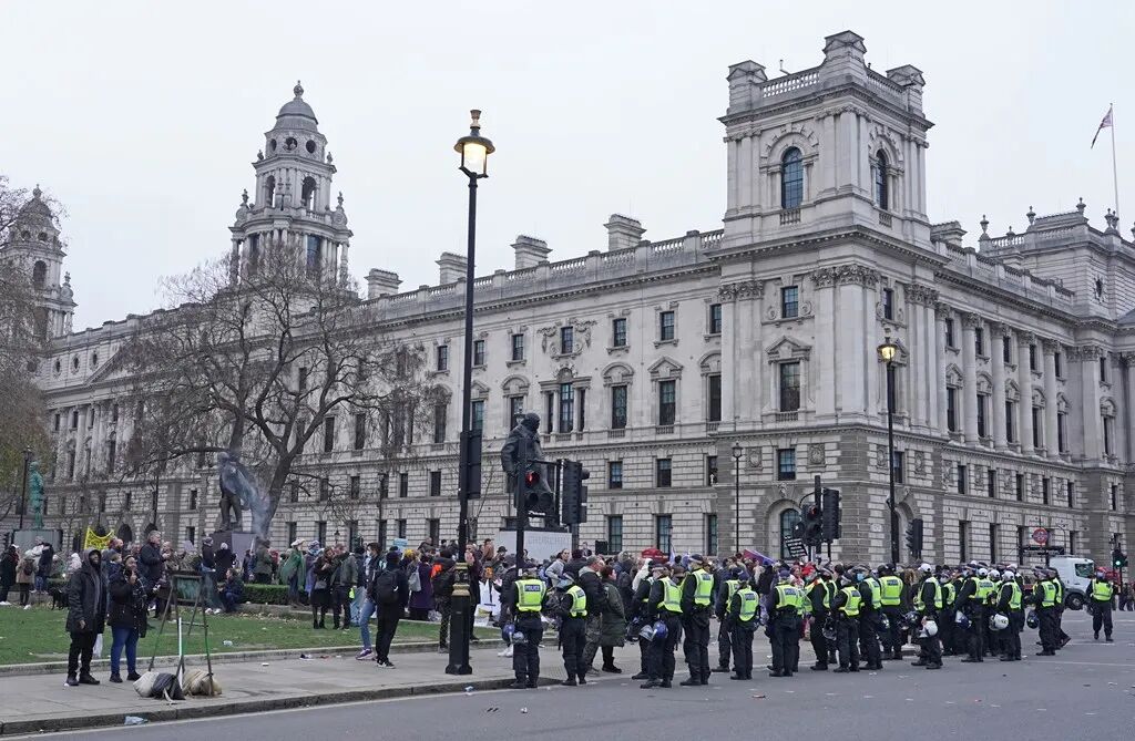 就在Sadiq Khan结束采访之际,大批反疫苗接种者聚集在伦敦市中心,手持标语,高呼“你真可耻”并与警察发生“混战”。一些示威者还举着支持美国前总统特朗普Donald Trump的旗帜。
