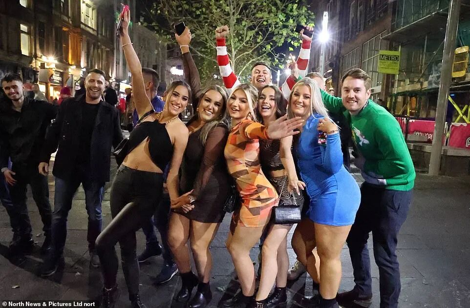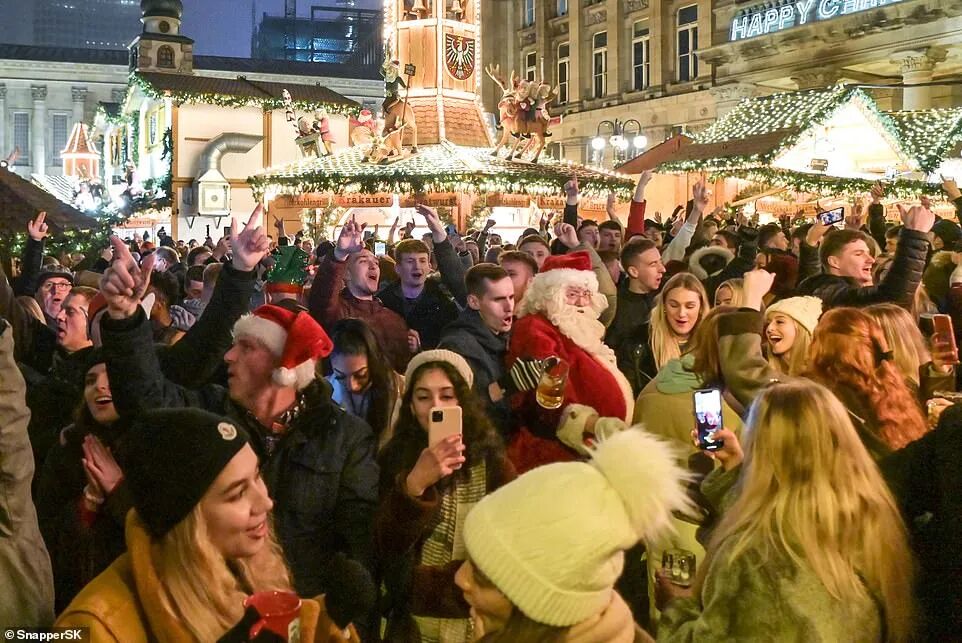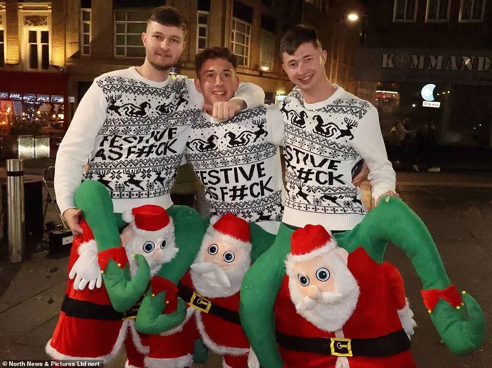 年轻的狂欢者们在酒吧、夜总会门口排起长队,挤满了利兹、伯明翰和纽卡斯尔的圣诞集市。