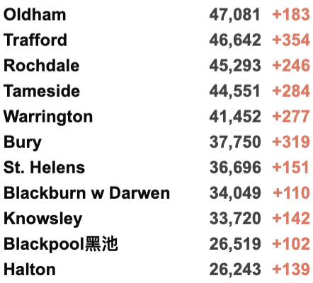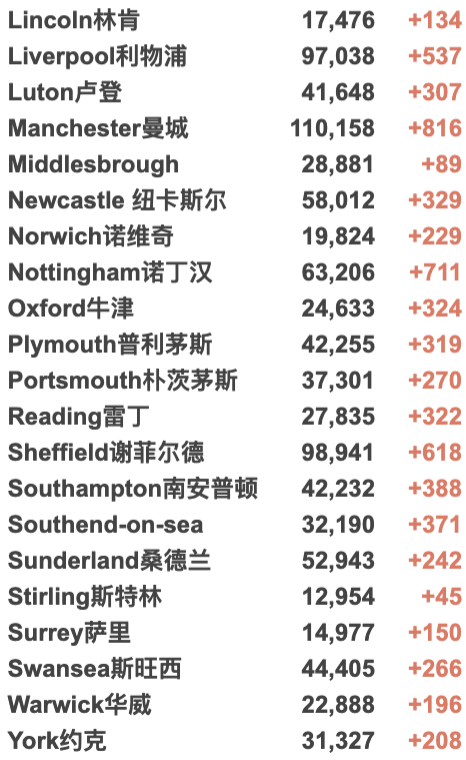 使得全英该新变种病例总数达到24,968例。其中英格兰9,427例,北爱尔兰514例,苏格兰96例,威尔士22例。