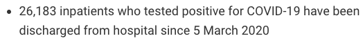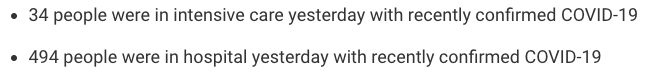 从2020年3月5日以来,苏格兰地区共有26,183名(=)确诊患者出院。截至12月18日午夜,近期住院的疑似/确诊新冠患者494名(-28),其中34名(+1)确诊新冠在重症监护室ICU。