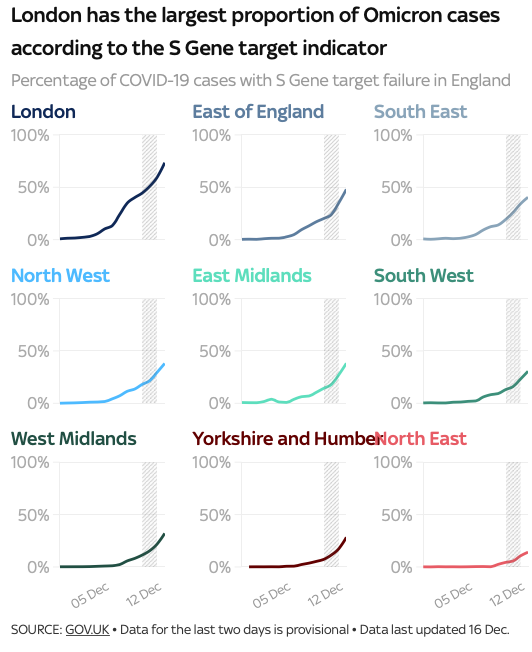 Omicron变种在英格兰各地的增长趋势 | 信息来源GOV.UK