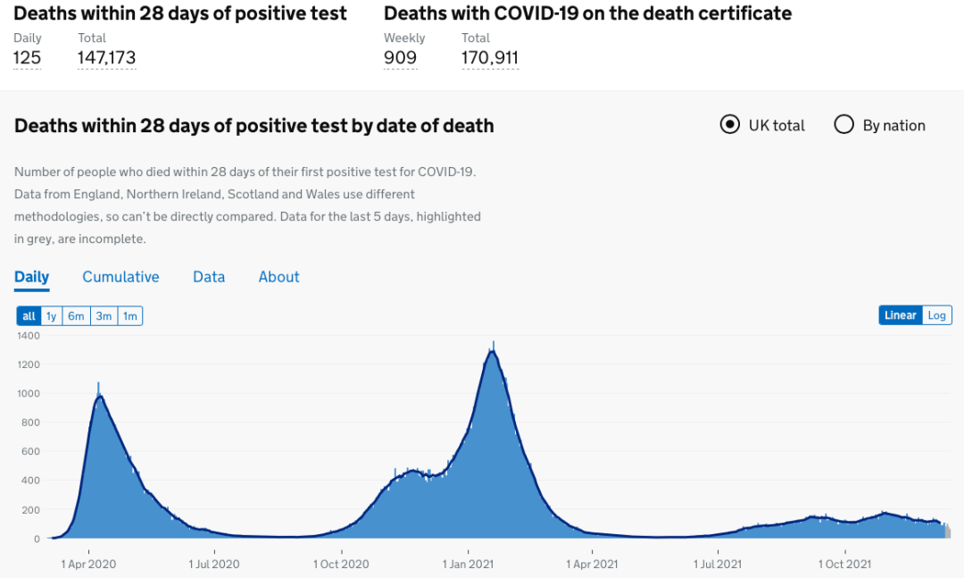 目前英格兰地区使用呼吸机的新冠患者有789人(+3);病亡新冠患者总计127,939人(+111)。