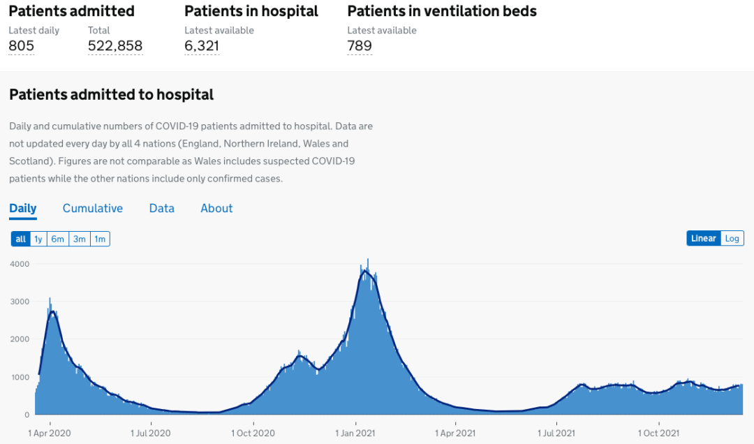 12月18日数据:目前住院的确诊新冠患者6,321人,累计住院新冠患者总数为522,858(+805)。