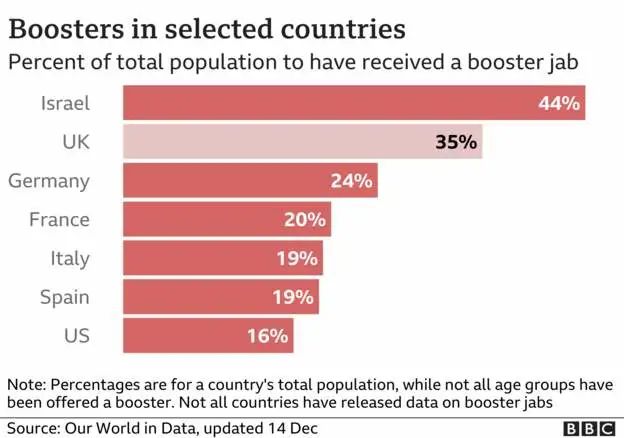 目前,英国12岁以上的人口中有48.8%的人已经进行了加强剂接种或第三剂疫苗接种。高于其他大多数国家。