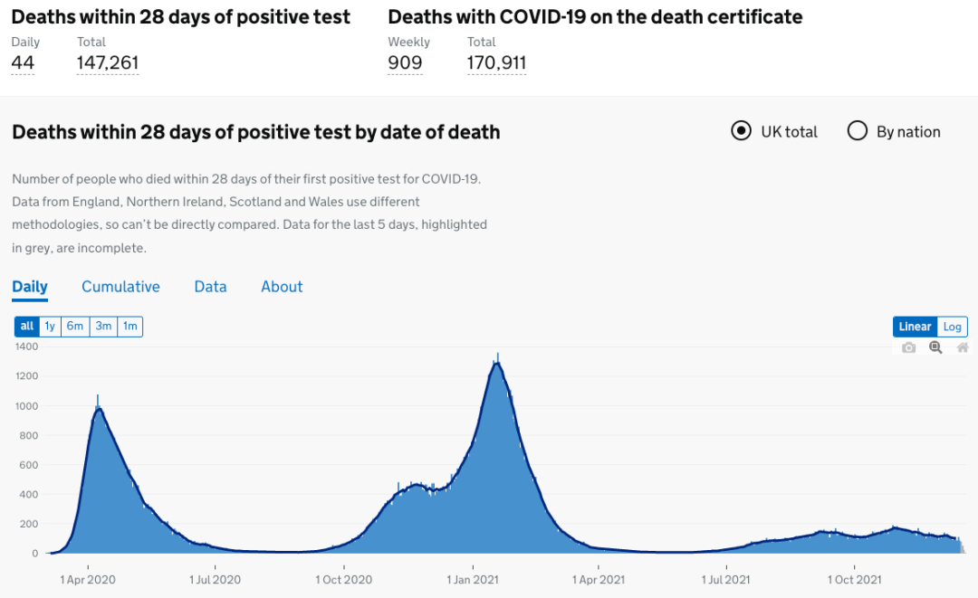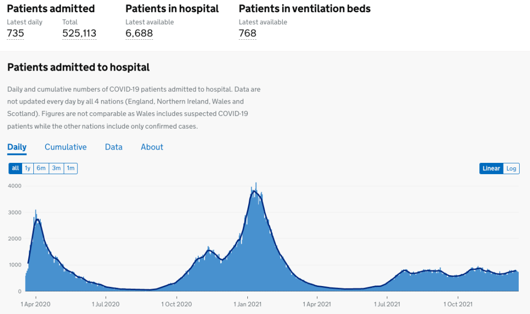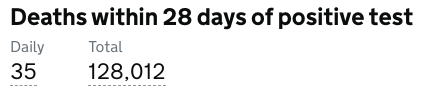目前英格兰地区使用呼吸机的新冠患者有768人(-21);病亡新冠患者总计128,012人(+35)。
