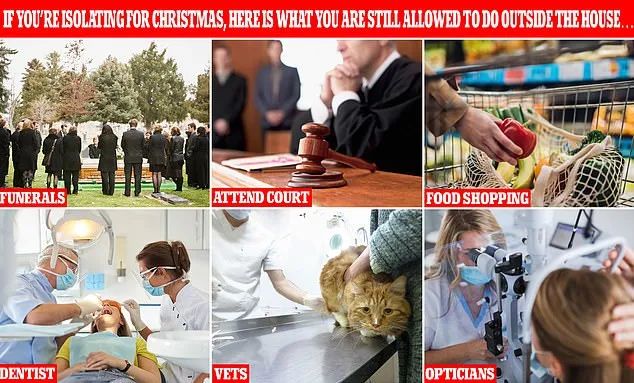 另外,根据英国政府官方规定,圣诞节期间在自我隔离的人(包括确诊者和密接者)仍然能够外出参加葬礼、购买食物,甚至在有限的情况下带宠物去看兽医。