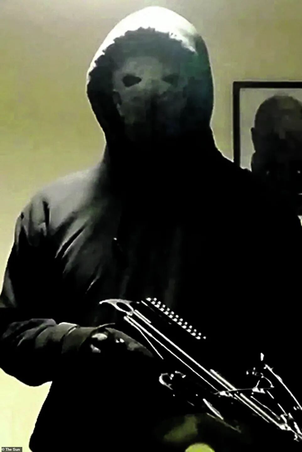 Snapchat视频中的男子与温莎城堡监控录像中的入侵者装扮一致,都穿着黑色运动服,戴着白色面具。