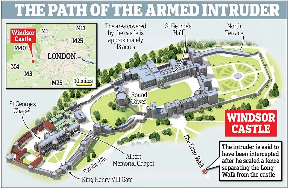 在这段视频发布仅24分钟后,圣诞节当天上午8点30分左右,警方接到报警,伯克郡Berkshire的温莎城堡出现“安全漏洞”,一名来自南安普敦的19岁男子因涉嫌破坏或侵入受保护场所和持有攻击性武器而被捕。
