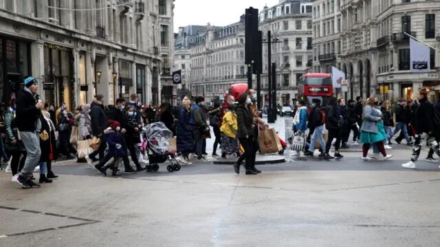 由于担心Omicron变种病例的激增,英国各地商店在节礼日(Boxing Day)的购物人流量骤降至疫情前的几乎一半。更多购物者转至网上购物,以避免增加出门感染新冠的风险。