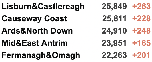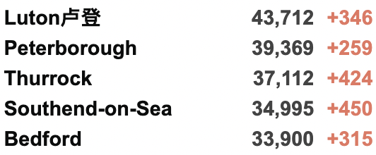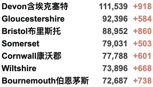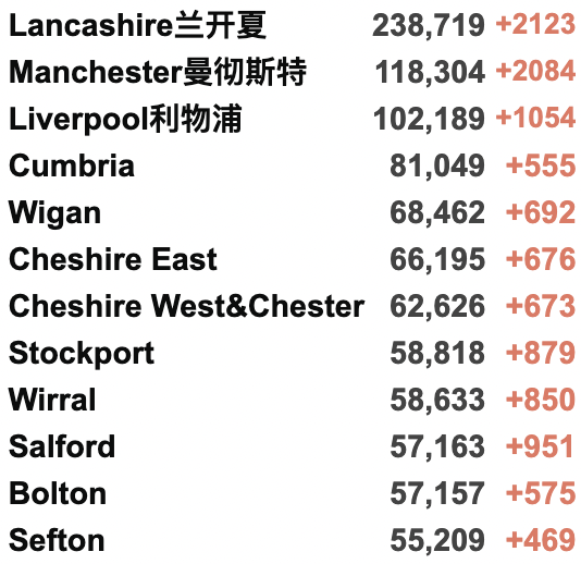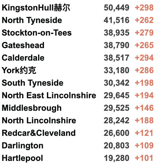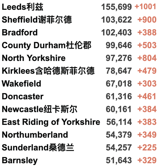 西北部 945人(+8%);约克郡/东北部 847人(+3%)