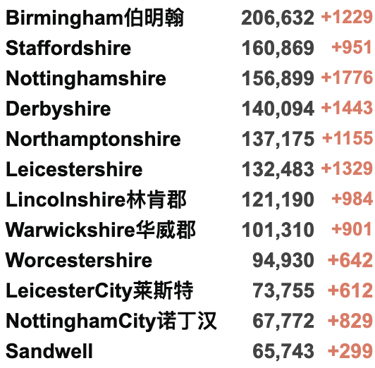英国疫情实时地图 / 城区具体数据