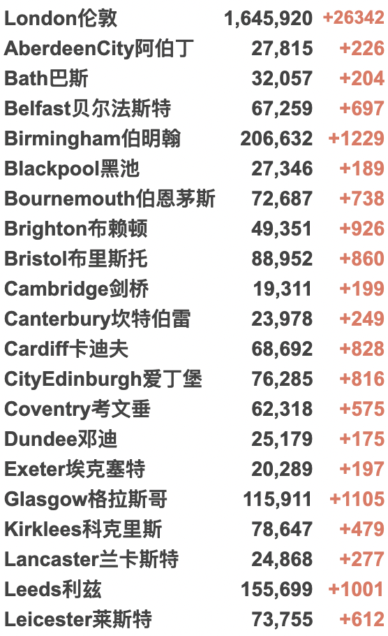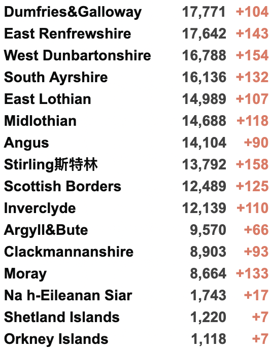 苏格兰、威尔士、北爱尔兰均无数据更新
