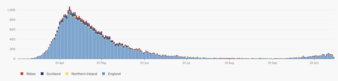 10月18日(周日)报道的苏格兰新增确诊仅为316例,苏格兰政府表示,这是由于核酸检测能力问题造成的,而非疫情减缓。
